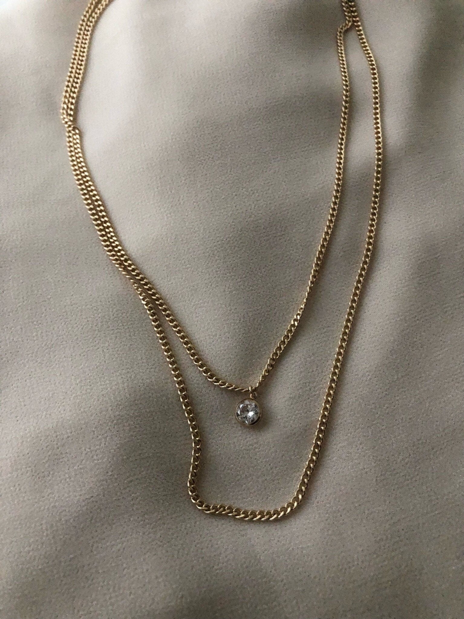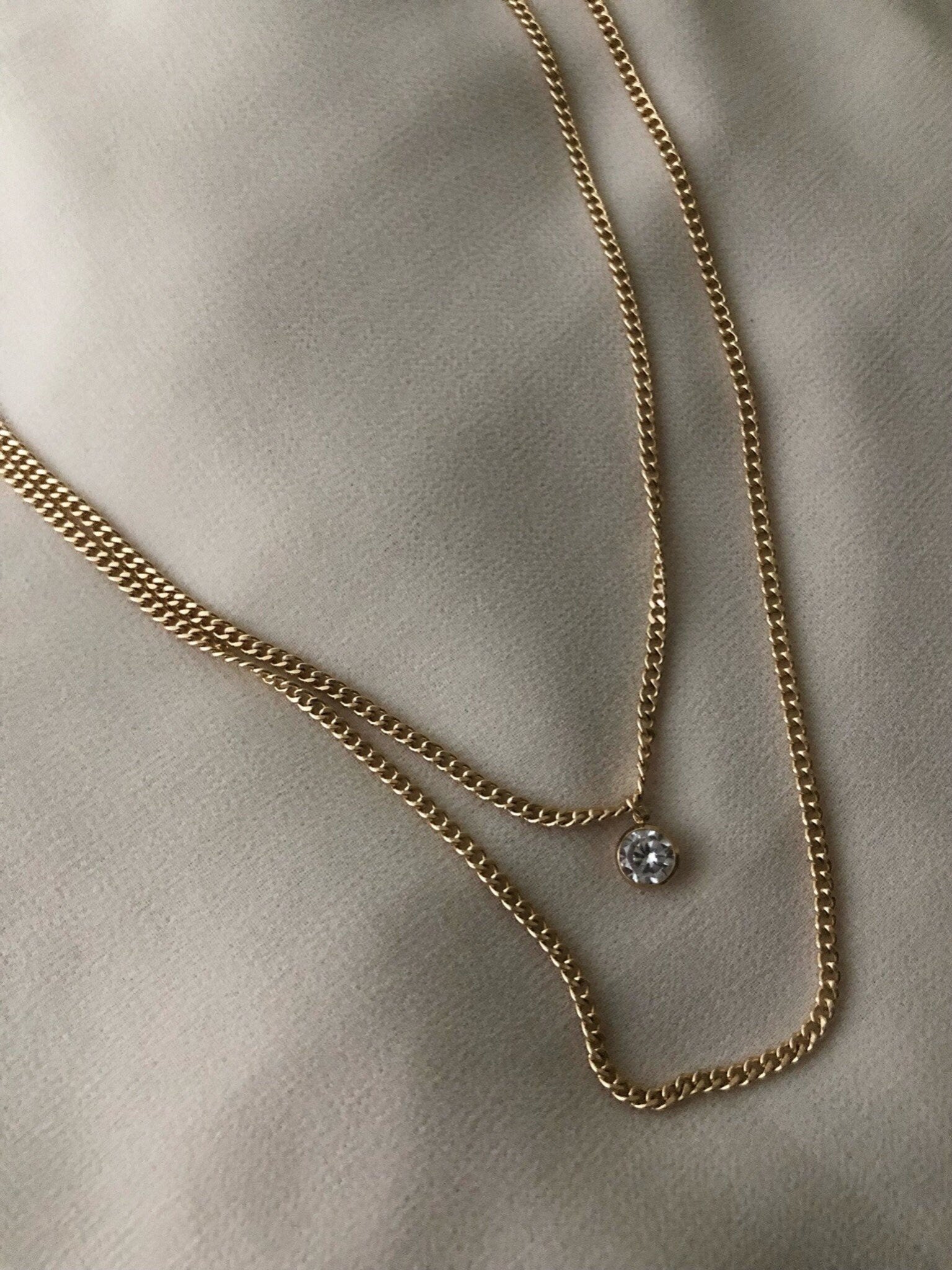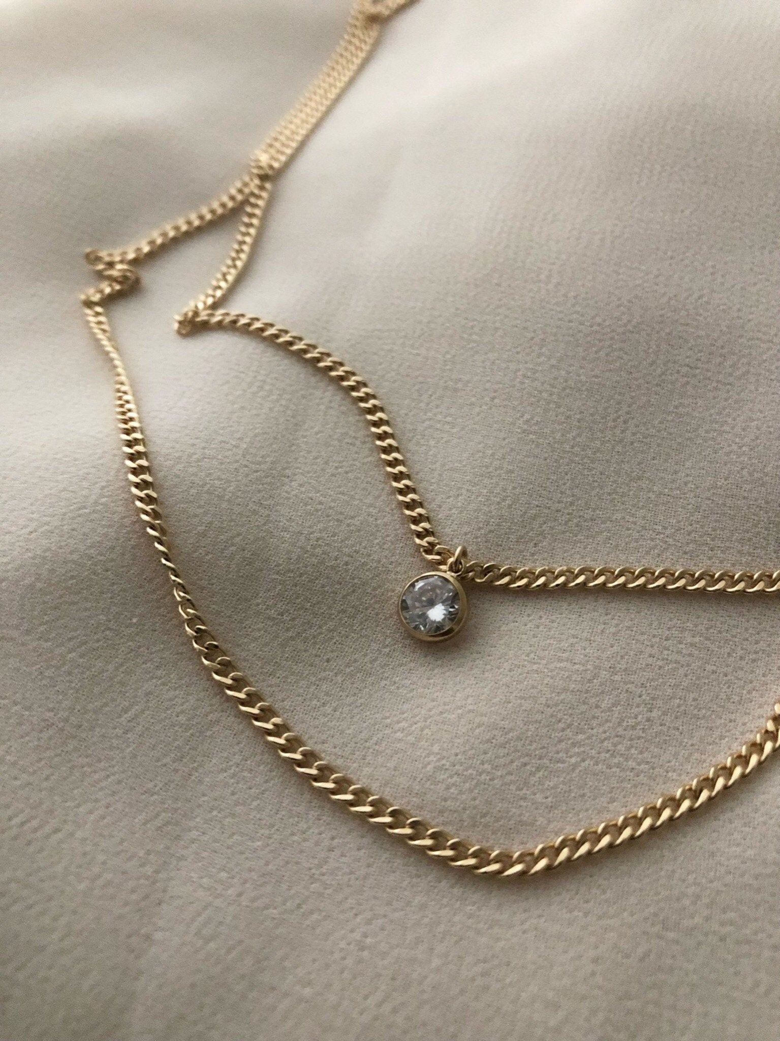 A minimal 14kt gold-filled double-strand crystal necklace that can be worn on its own or layered.