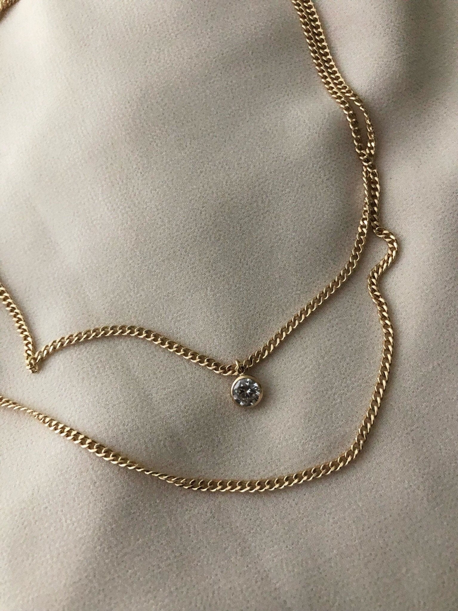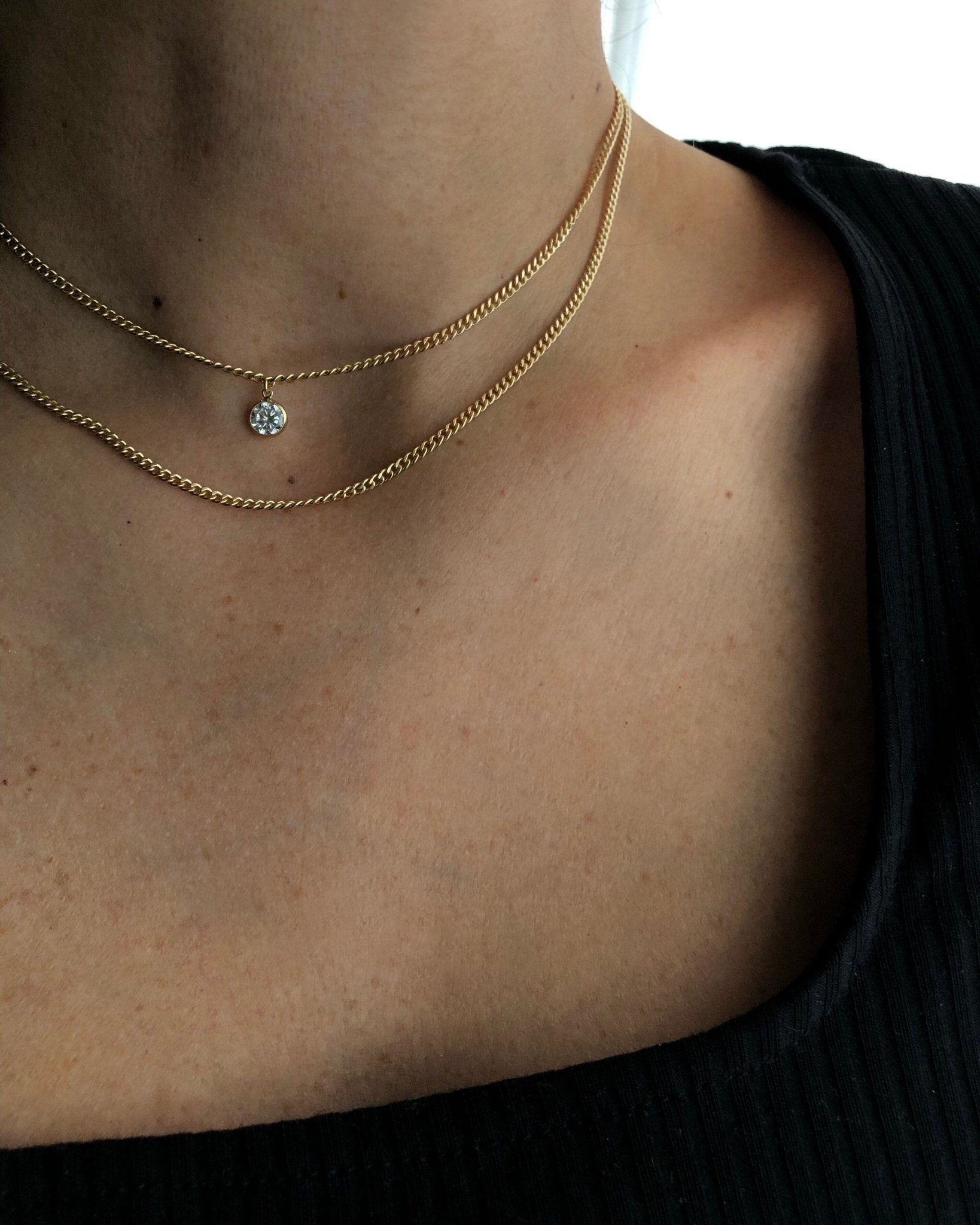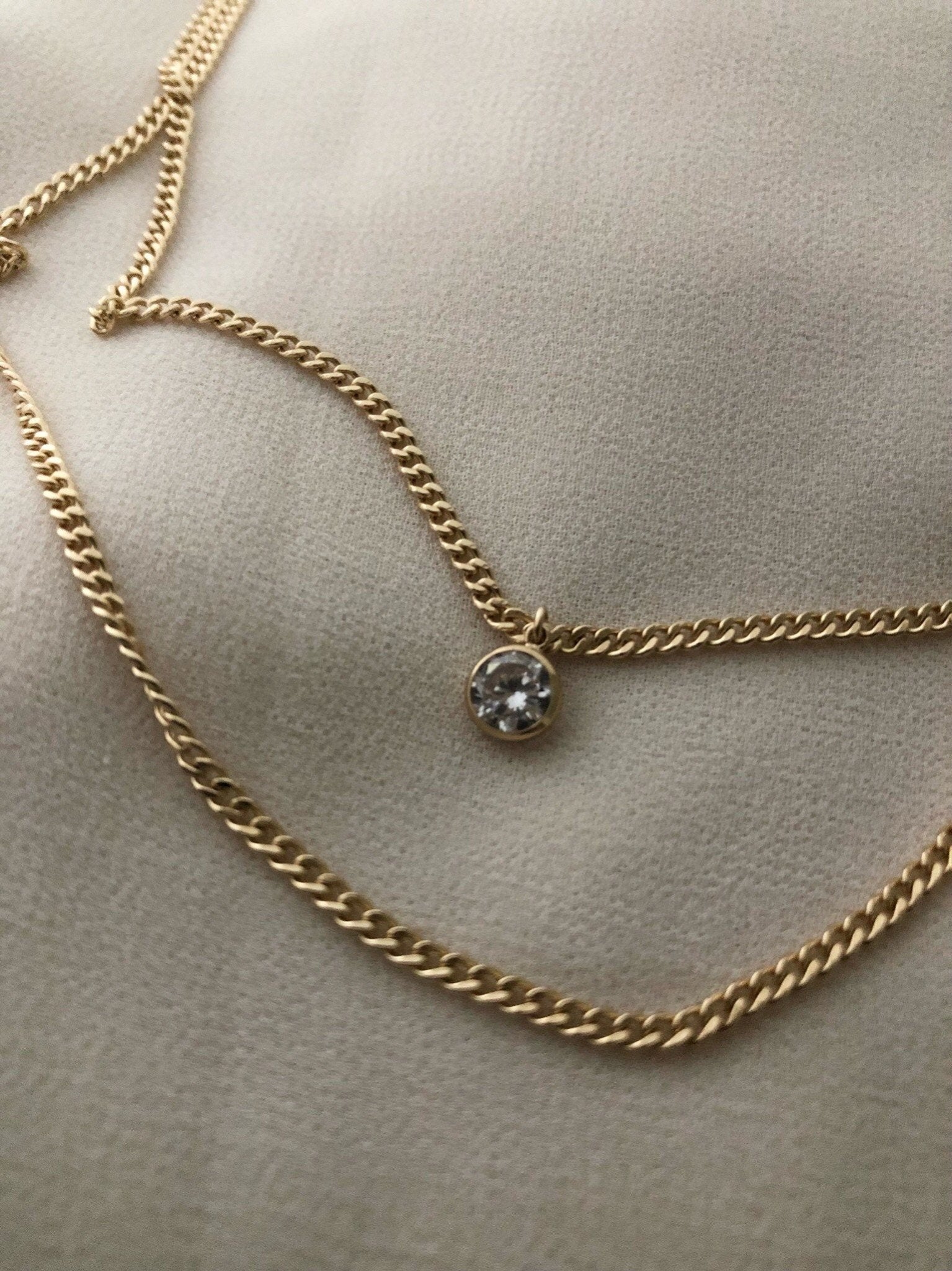 A minimal 14kt gold-filled double-strand crystal necklace that can be worn on its own or layered.