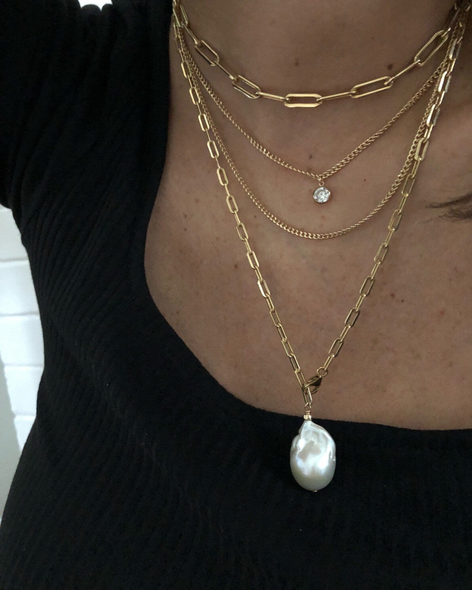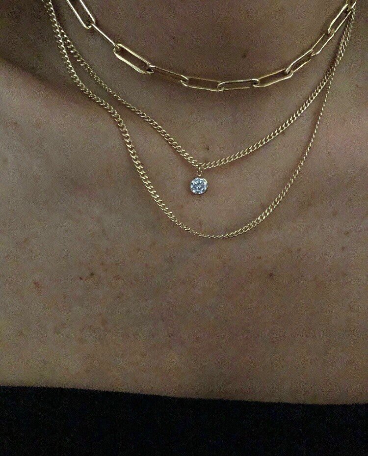 Simple and elegant on its own or with other pieces. Multi-strand curb chain details that sparkle when they hit the light.