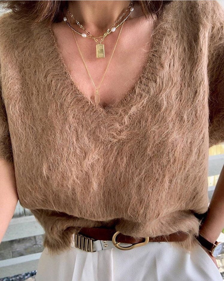 Measures at approx. 15”. It’s not quite as short choker but sits as a collar necklace.