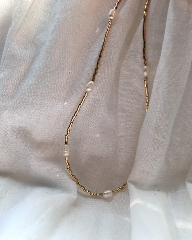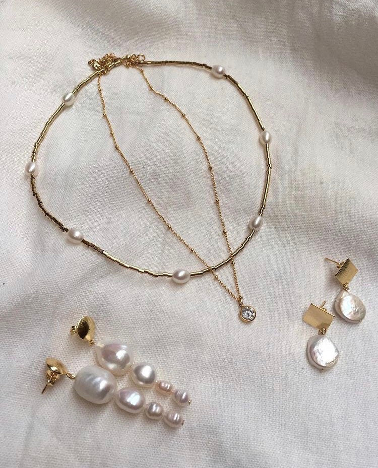 A beautiful baroque freshwater pearl + 14kt gold filled statement necklace that can be worn every day, layered or on its own.