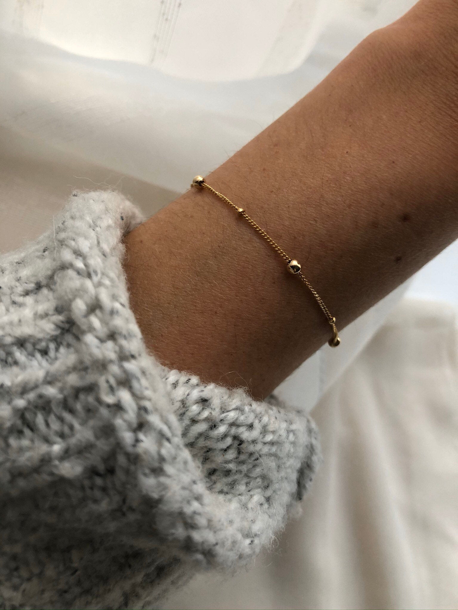 The perfect dainty thin chain ball bracelet you’ll never want to take off and you don’t have to!