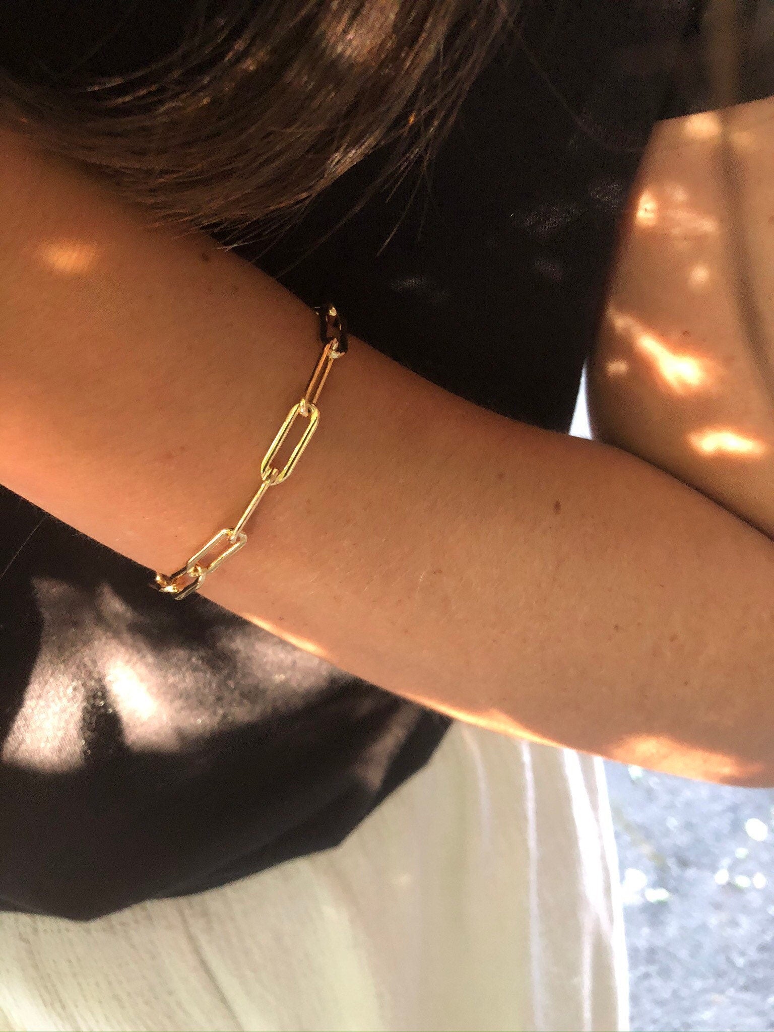 The perfect thick paperclip, rectangle chain bracelet youβll never want to take off and you donβt have to!