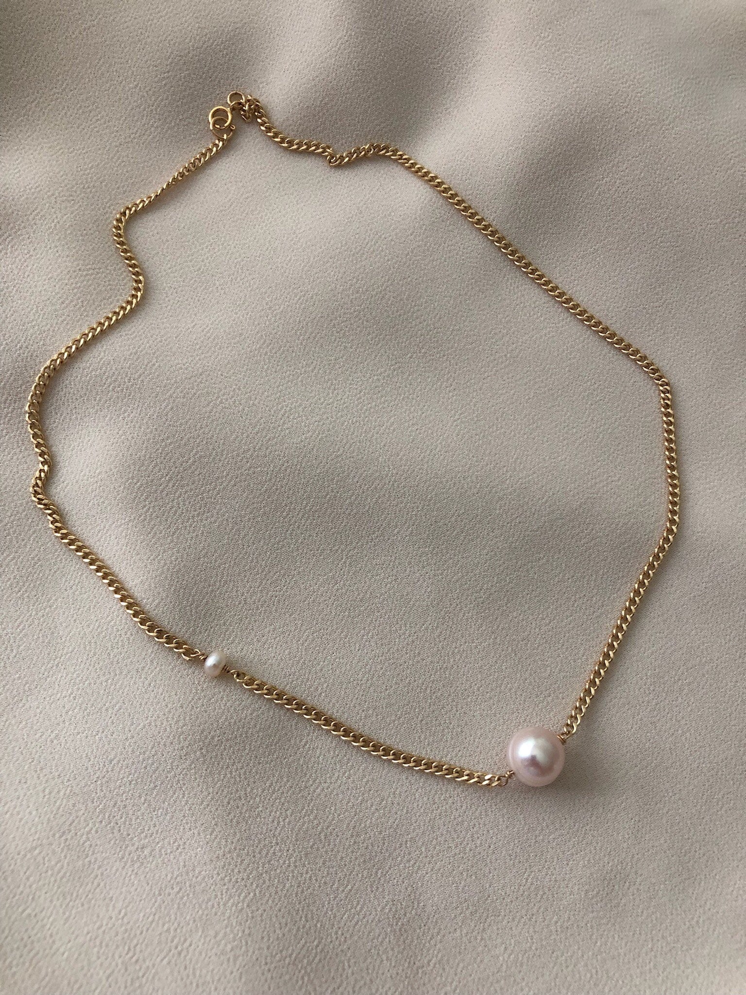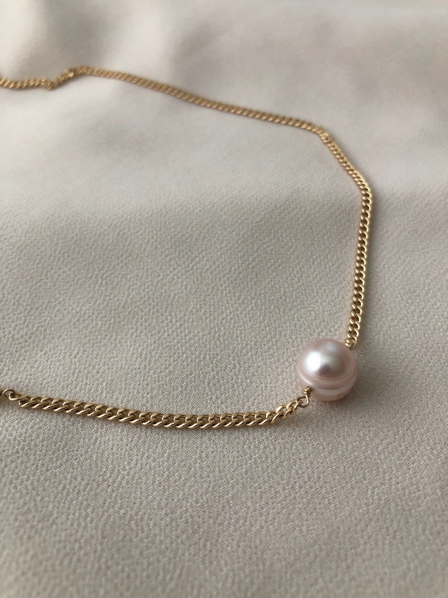 A perfect minimalist, high quality 14kt gold filled chain and freshwater pearl necklace thatβs unique enough to wear on its own or layered.